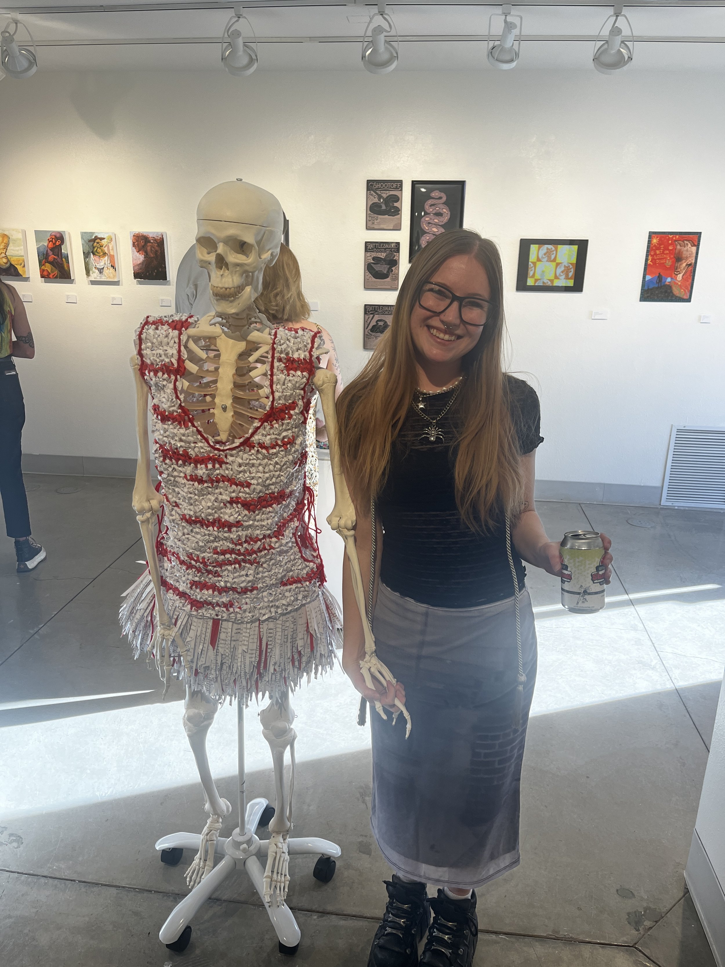 Anne Bass is an emerging mixed media artist who creates sculptural and wearable artworks inspired by nostalgia and her interest in gore and horror. She is currently working with found objects and unconventional materials, such as wire and paper, to create a crocheted line of conceptual wearable pieces. She was born and raised in Fort Worth, Texas and is currently studying and working in Durango, Colorado. She is finishing her Bachelor of Arts in Studio Art with a minor in Business Administration from Fort Lewis College. She has also interned at the Main Gallery in the Art & Design Department at Fort Lewis College, and is interested in pursuing opportunities in museum and gallery management and other possible future pursuits. She has been a part of the 61st, 62nd, and 63rd Annual Student Juried Show and a group show, Alante Détras in the Main Gallery at Fort Lewis College. Anne is also showing work in an upcoming senior group show, Surge, at the Main and Exit Galleries at Fort Lewis College.